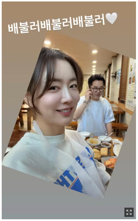 신보람은 SNS에 사진과 함께 “배불러 배불러”라는 짧은 글을 남기며 소소한 데이트 순간을 공유했다.