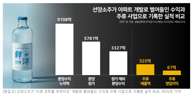 하지만 선양소주는 단순한 주류 기업에 그치지 않았다. 수익 다각화를 위해 부동산 시행 사업에 뛰어든 것이다.