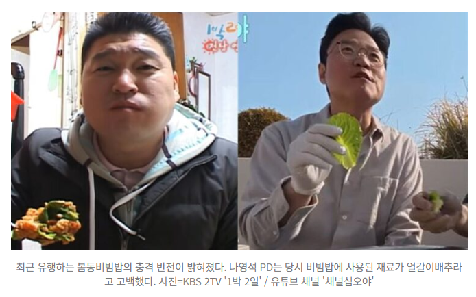 유튜브 채널 ‘채널십오야’에 출연한 나영석 PD는 당시 비하인드를 공개하며 “봄동이 아니라 얼갈이배추였다”고 밝혀 관심을 끌었다.