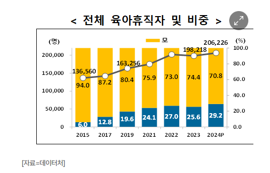 데이터처는 “남성 육아휴직 증가로 제도 정착은 가속화되고 있지만, 중소기업과 소규모 사업장의 접근성을 높이기 위한 정책적 보완이 필요하다”고 밝혔다.