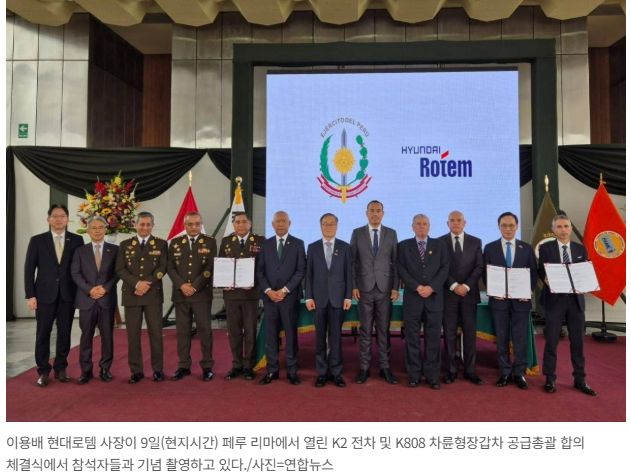 정부에 따르면 한국과 페루는 K2 전차, K808 차륜형 장갑차 등 지상 무기체계 공급과 관련한 총괄합의서를 체결했다.