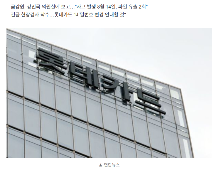 롯데카드는 금감원에 "백신 추가 설치와 악성코드 진단 조치를 완료했고, 정보 유출 가능성이 있는 고객을 확인해 카드 비밀번호 변경 등을 안내하겠다"고 보고했다.