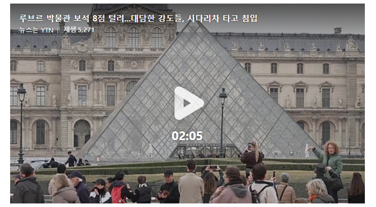세계에서 가장 많은 관람객이 찾는 프랑스 루브르 박물관에서 영화 같은 강도 사건이 벌어졌습니다. 4인조 강도가 사다리차를 타고 침입해 나폴레옹 왕실 보석 8점을 훔쳐 달아났습니다.