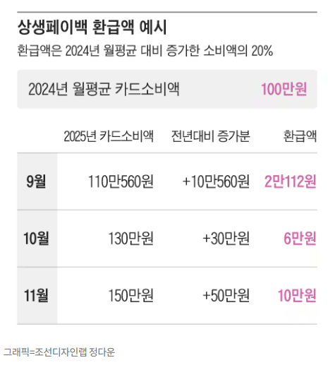 - 상생페이백은 9~11월 카드 증가액의 20% 환급