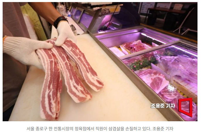 삼겹살 소매가격도 100g당 2678원으로 평년 대비 13.6% 높은 수준이다.