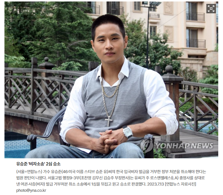 판결 요지 서울행정법원 행정5부는 가수 유승준(48·스티븐 승준 유) 씨가 주 로스앤젤레스(LA) 총영사를 상대로 낸 사증(비자) 발급 거부 처분 취소 소송에서 원고 승소 판결을 내렸습니다. 이번 판결은 유 씨가 제기한 세 번째 비자 관련 소송에서 다시 승소한 것으로, 법원은 “비자 거부로 얻을 공익보다 개인의 피해가 더 크다”며 비례 원칙 위반을 근거로 제시했습니다.