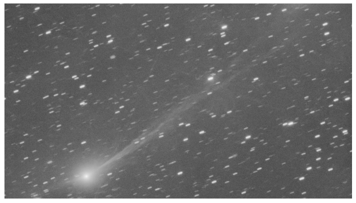 - 궤도 방향으로 이어지는 전형적인 먼지 꼬리 관측