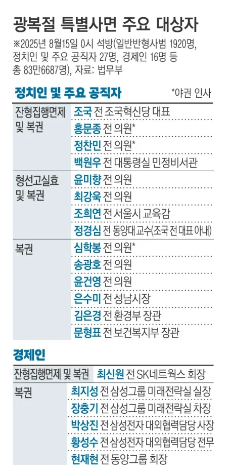 - 정치인·전직 주요 공직자 27명 — 조국 전 대표, 백원우 전 대통령실 민정비서관, 홍문종·정찬민·하영제 전 의원 등
