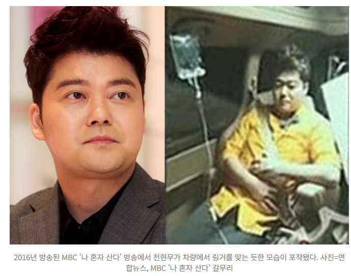 방송인 전현무(48)가 2016년 MBC 예능 ‘나 혼자 산다’ 방송을 통해 공개됐던 차량 내 링거 장면과 관련해 불법 의료 논란이 불거지자 직접 진화에 나섰다.
