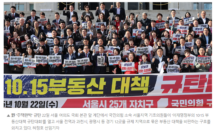 ‘10·15 부동산 대책’은 부동산 과열을 잡겠다는 명분 아래 시행됐지만, 그 여파로 실수요자와 서민층의 주거 사다리가 흔들리고 있다. 정부는 금융안정과 서민 보호라는 두 목표를 조화롭게 달성할 수 있는 보완책을 마련해야 한다.