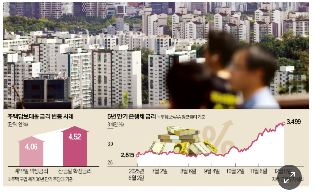 - 국채·은행채 금리 상승 → 지표금리(특히 5년·10년물 은행채 기준) 급등