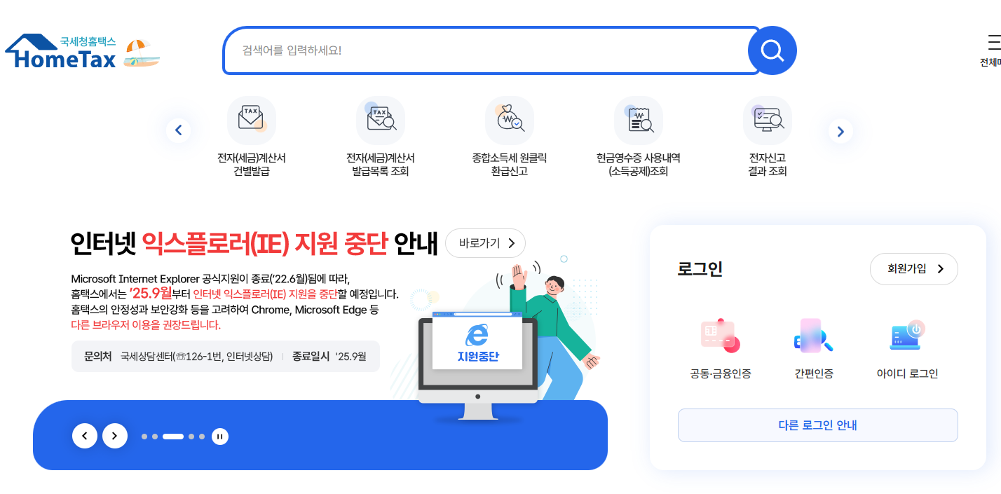 - 국세청 홈택스 홈페이지 접속: https://www.hometax.go.kr