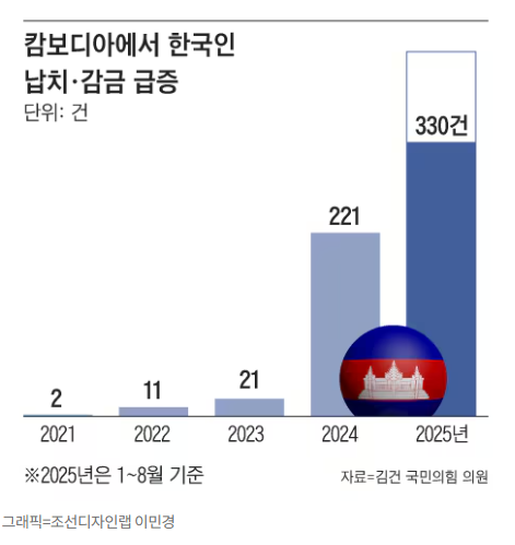10일 외교부 등에 따르면, 캄보디아에서의 한국인 납치 신고는 2022~2023년 연간 10~20건 수준에서 지난해 220건, 올해 8월까지 330건으로 폭증했습니다.