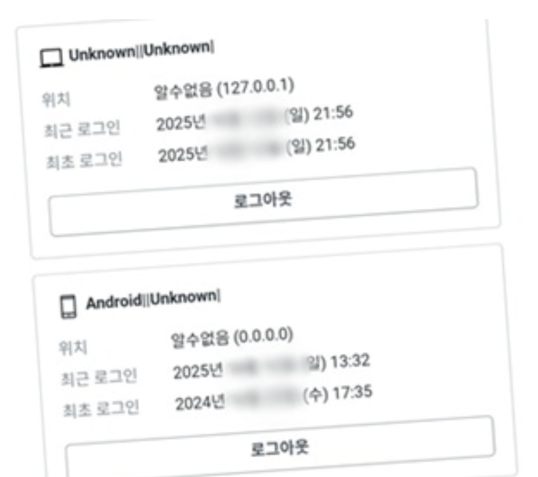 - 현재 로그인된 기기 및 과거 로그인 기록 확인