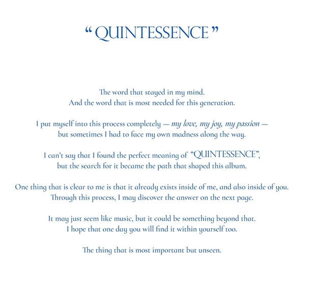 공개된 이미지에는 ‘QUINTESSENCE’라는 단어가 담겨 눈길을 끌었다.