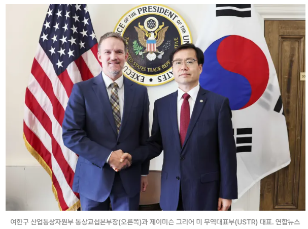 여한구 산업통상자원부 통상교섭본부장은 21일(현지시간) 제이미슨 그리어 USTR 대표와 만나 최근 타결된 한미 무역 협상 프레임워크를 바탕으로 세부 내용을 논의한 것으로 알려졌습니다. 이어 김정관 산업통상자원부 장관은 22일 워싱턴에 도착해 상무·에너지부 인사들과 면담하고, 조현 외교부 장관도 워싱턴에 합류해 외교 현안을 조율할 예정입니다.