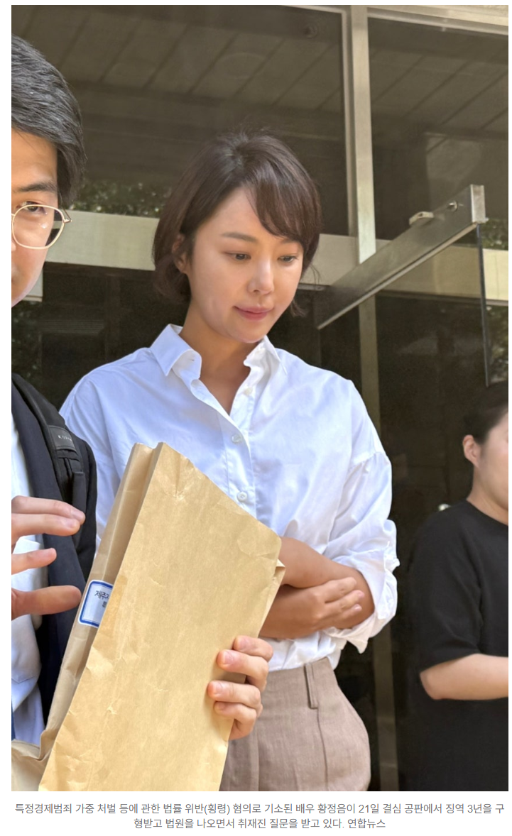 검찰이 배우 황정음(40)이 회사 자금 약 43억 원을 횡령한 혐의로 징역 3년을 구형했습니다.