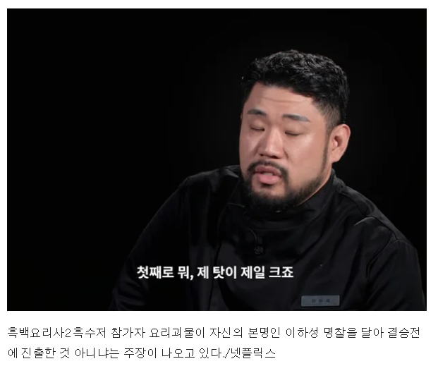 글쓴이는 흑수저 참가자 ‘요리괴물’의 인터뷰 장면에서 명찰에 닉네임이 아닌 실명 ‘이하성’이 잠시 노출된 점을 지적했다.