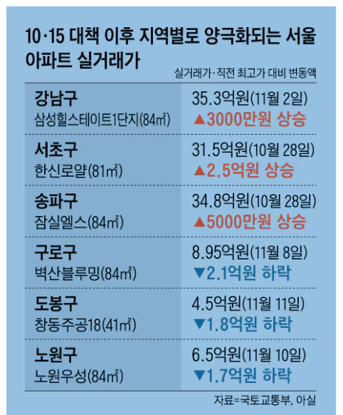 10·15 부동산 대책 한 달…서울·수도권 ‘집값 양극화’ 심화됐다